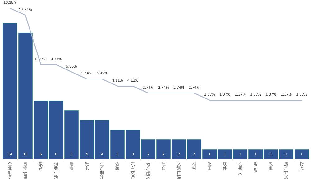在赛道分布看,本周企业服务(14笔)医疗健康(13笔)的融资数量保持领跑态势,而教育与消费生活领域的融资数量也较上周有所增加。