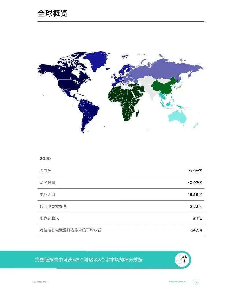 据Newzoo的市场报告显示,2020年,在全球77.95亿人中,有19.56亿的电竞人口,其中核心电竞爱好者占到了2.23亿。 像《英雄联盟》S赛这种大型赛事的观赛量,已经超过了NBA季后赛等传统体育赛事。
