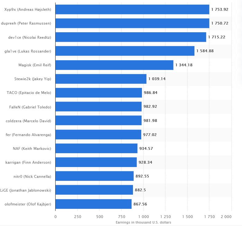 据财报显示,选手的工资占了这些支出的大头。在2019年《CS:GO》选手收入榜中,A队选手霸占五席。