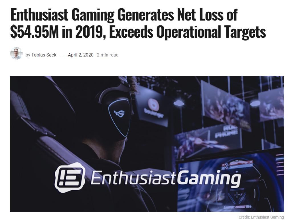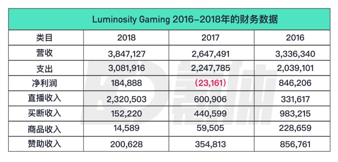 不同于新宠A队,第二个发布财报的Luminosity Gaming更符合落魄贵族的形象。去年5月份,LG被Enthusiast Gaming收购,被并入了电竞战队业务。自5月份收购到年底这近7个月的时间里,LG的营收达到了120万,净亏损为73万。