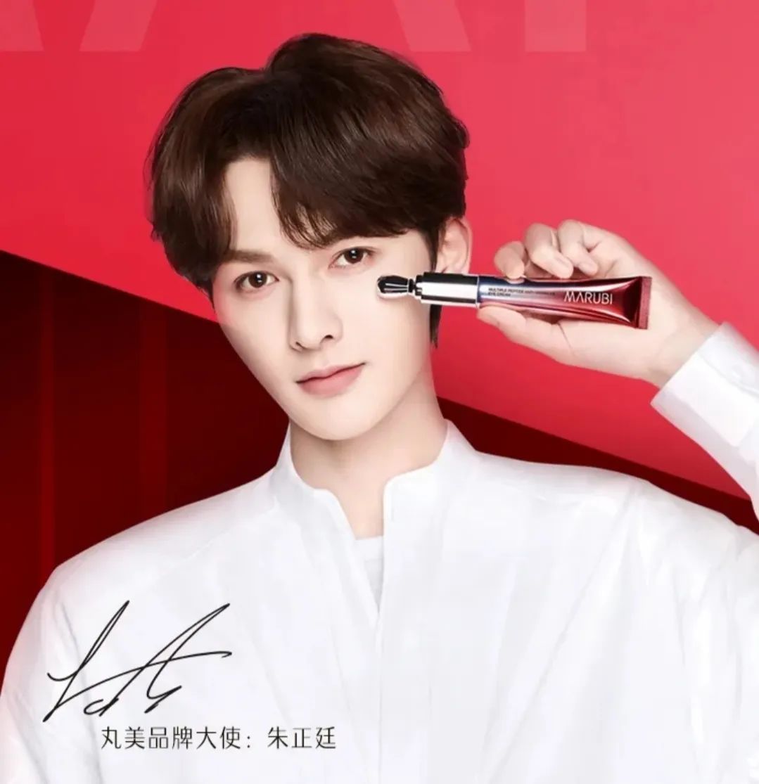 2018年,丸美请到了彭于晏代言弹力蛋白眼精华,而近期的新品小红笔眼霜,则官宣品牌大使为《偶像练习生》出道选手之一的朱正廷。