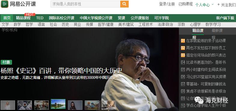 2018年年初,在全站内容仍以免费为主的情况下,网易公开课加入了体系化的付费课程。这个在公开课首页上端出现的子菜单先是叫“付费精选”,后改了个名,叫“精品课程”,“付费”二字显然是被刻意拿掉的。