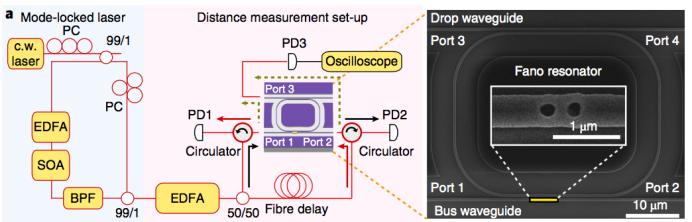锁模是光学里一种用于产生极短时间激光脉冲的技术,脉冲的长度通常在皮秒甚至飞秒。5 MHz 的脉冲重复频率允许测量距离长达 60 m,并且可以使用带通滤波器将脉冲的中心频率调整为 Fano 器件的工作范围。