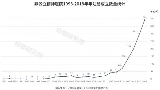 据世界卫生组织(WHO)披露数据显示,全球有超过3.5亿人罹患抑郁症,近十年来患者增速达18%。2019年6月28日,《中国医院院长》表示在企查查上以“精神医院”为关键词进行企业检索显示,共1546家企业注册在精神医院“卫生和社会工作”相关行业分类下。其中,2001年前成立的仅为个位数。