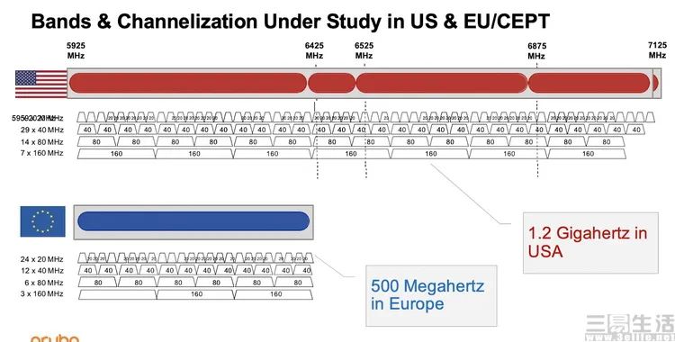 欧美地区在6GHz频谱资源上相当充裕,而且是开放式使用,无需许可