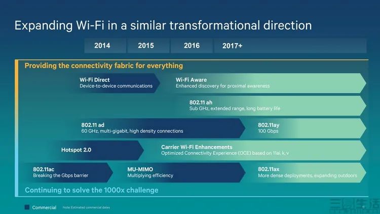 要知道,11be要达到传言中的“30Gbps”需要多达16条数据流并发,也就是说如果只针对单天线设备的话,那么802.11ay比802.11be快了23.5倍之多。那么我们又凭什么能够断定,速度更慢的11be技术就一定能够成为未来的“WiFi7”呢?