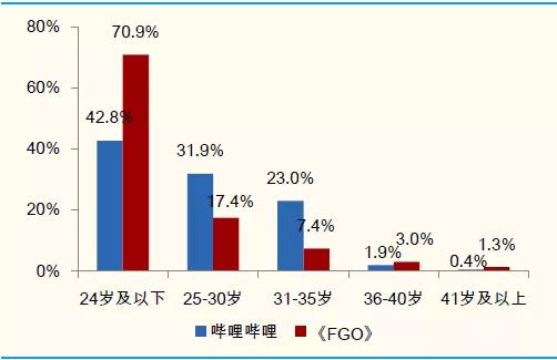 根据QuestMobile的统计报告,在国服二次元受众中,25岁以下的玩家一般为75%,和日服有着巨大差异。从FGO的用户划分也可以看到,国服的“年轻人”比日服要多很多。