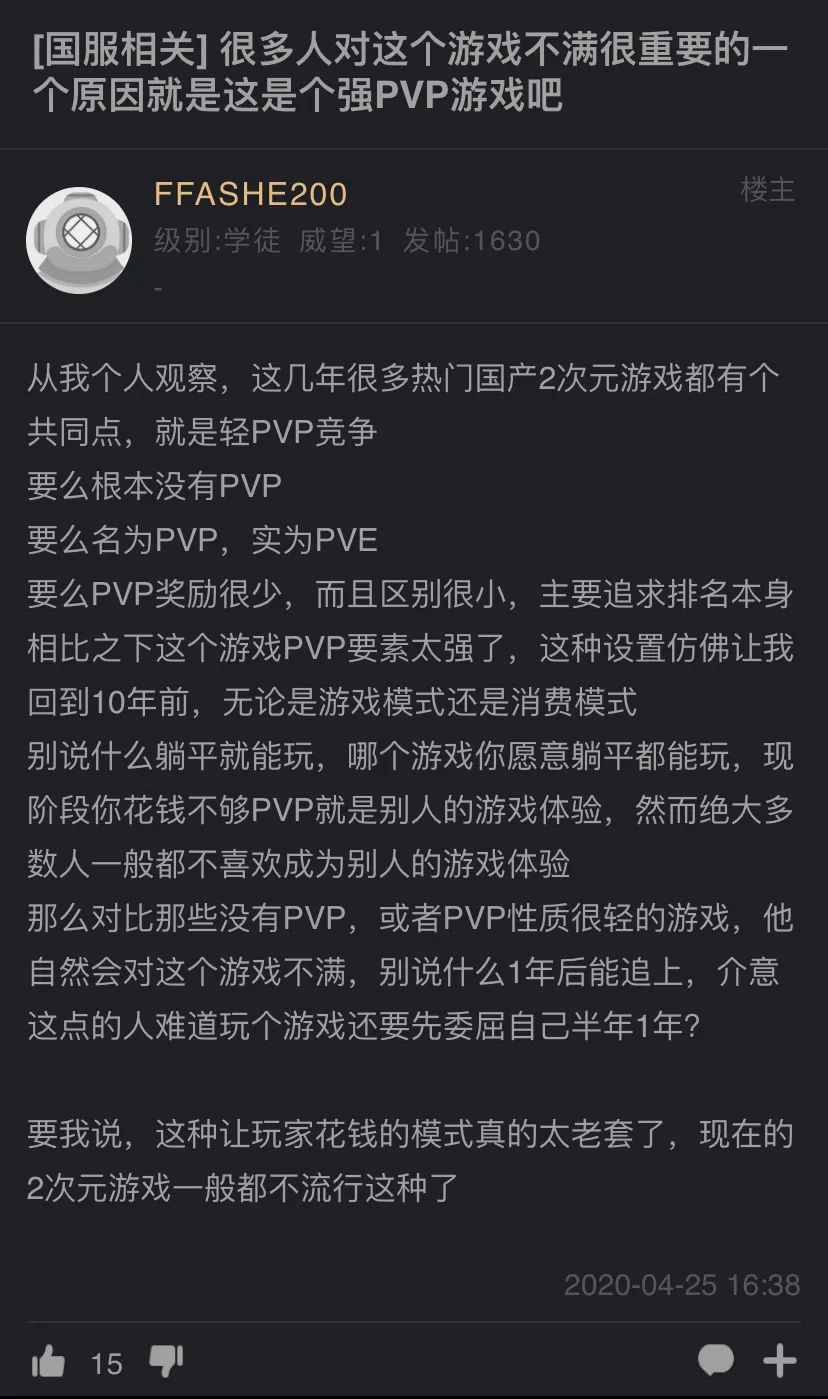 从二次元的头部手游中我们也会发现,《FGO》、《明日方舟》都是秉持着轻量游戏的目的来进行设计。哪怕是肝度较高的《阴阳师》和《崩坏3》,游戏策划也在尽量拉低新老玩家之间的差距。《公主连接》的PVP机制在二次元玩家中并不怎么受欢迎,“人权卡”更是一个禁语。