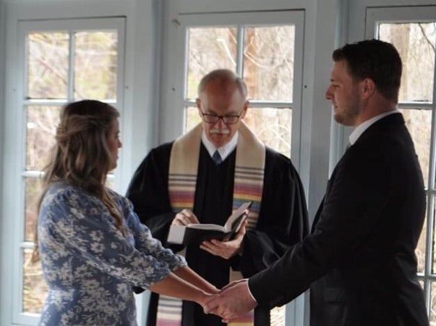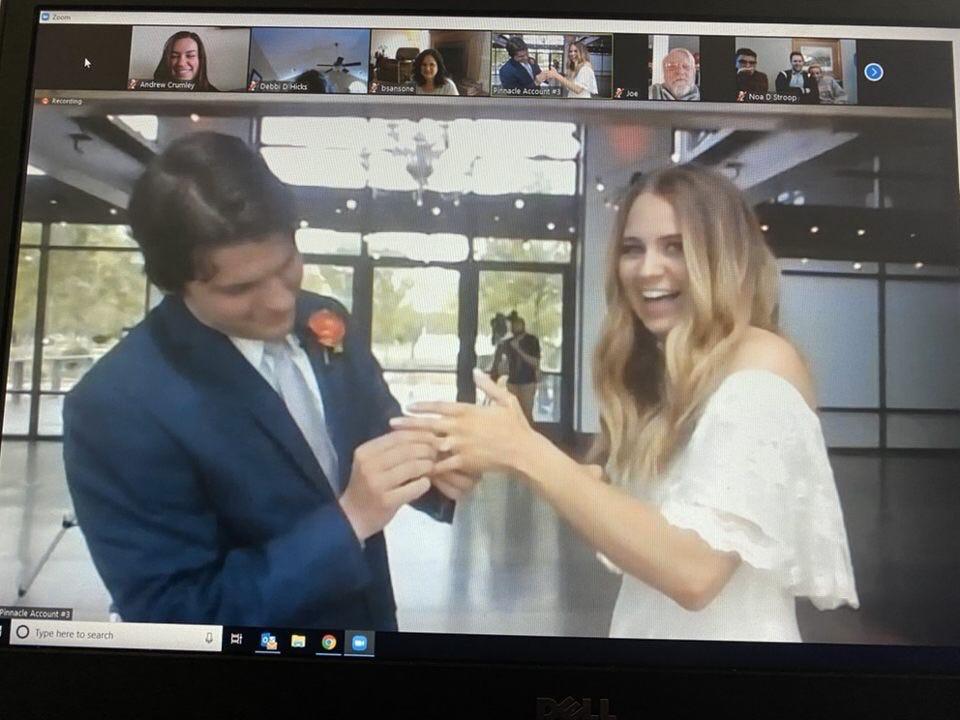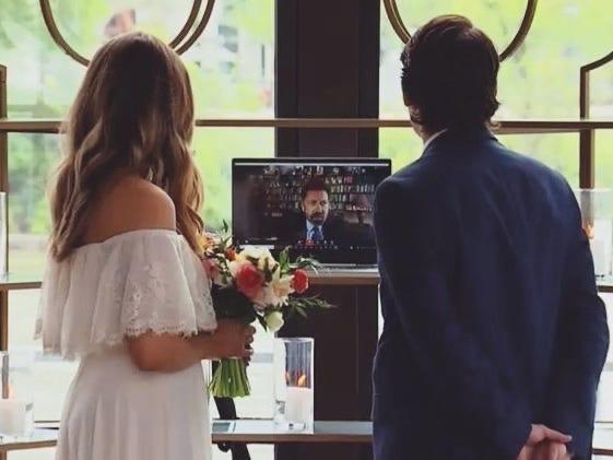 这对新人的婚礼,连牧师都是通过Zoom,在线主持仪式的。