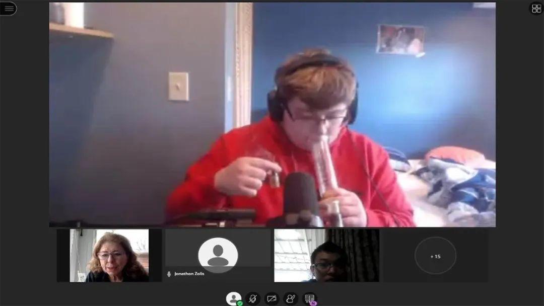 化学老师Jacob Anderson也告诉记者,在他的课堂上有一位ID为Zaxs的同学加入,因为他无法确定此人的真实身份,在上课前便没有出声询问。直到课程开始,他准备在黑板上写下第一个公式时,这个陌生学生突然在镜头里起身,把衣服脱了个精光,并在视频那段大声吆喝起来。