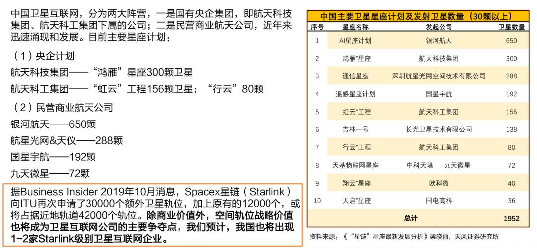 天风证券研报数据显示,目前全球仅有中美两国开始全球卫星互联网的建设。