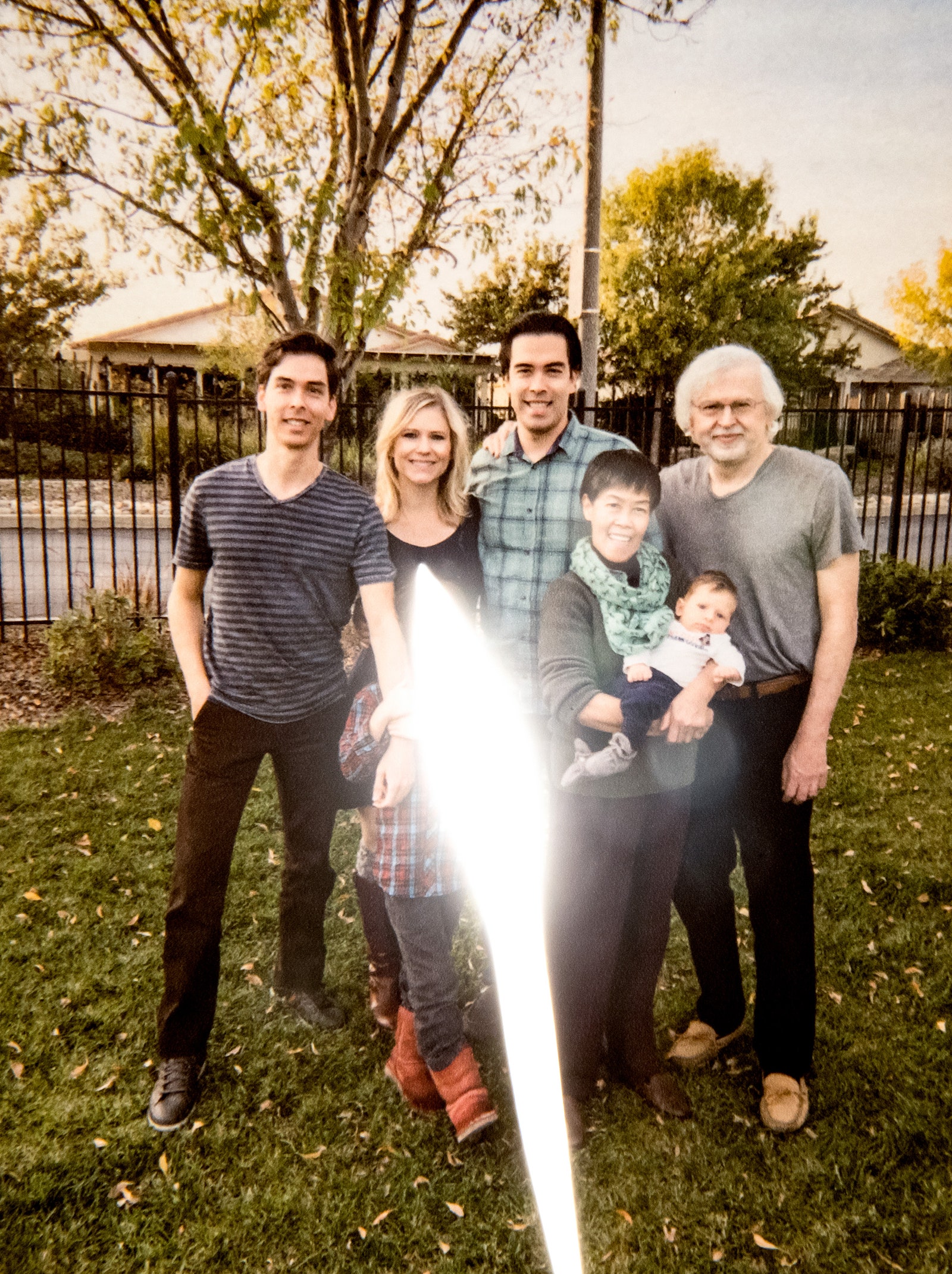 2016年的感恩节家庭聚会,Lee(中),(左起)是弟弟Alaric,妻子Kristin,他的大儿子,他的母亲Kathy,他的小儿子,以及他的父亲Rendon