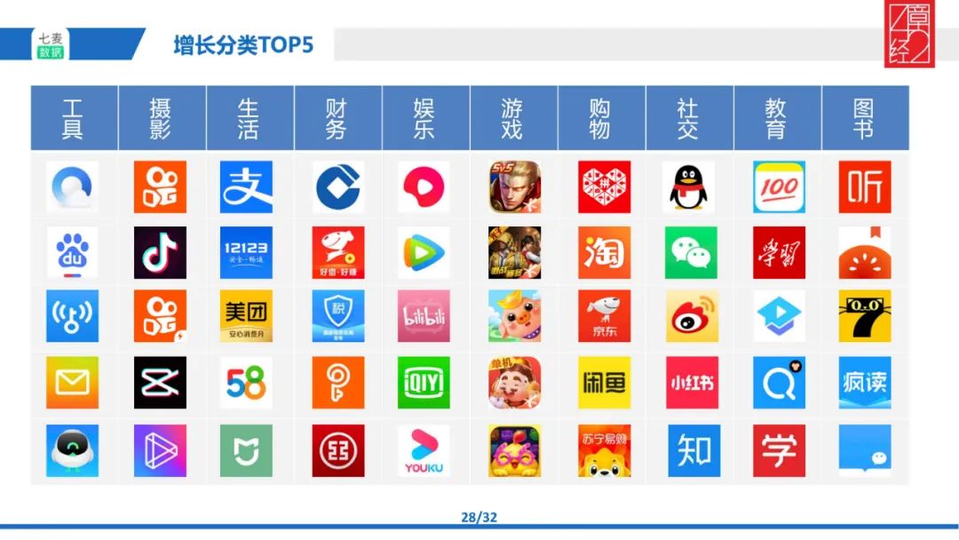 先说明研究背景,我以七麦 2020 年 1、2、3 月份移动应用增长榜 Top 200 作为基础,这个榜单排名是根据 App 在 App Store 以及国内安卓市场(应用宝、360、百度、OPPO、vivo、华为、魅族、豌豆荚)的下载量数据综合评定而得出的。