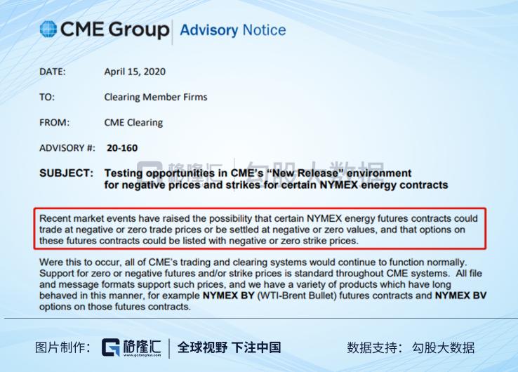 4月15日,芝加哥交易所临时发布了一份文件,声称最近市场行情,使得能源期货合约出现了0值甚至负值的可能,因此芝加哥交易所开始提供“负值”交易。
