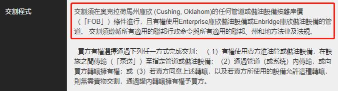 要求中体现的是,WTI原油期货合约如果要交割,只能在美国的库欣进行。