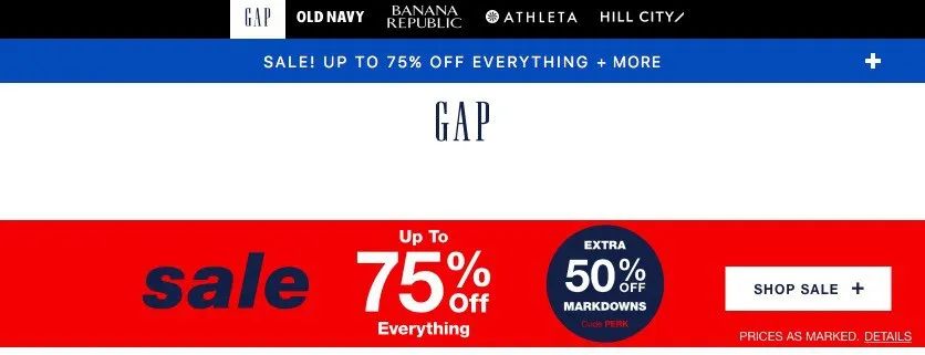 除了上述措施,GAP甚至推出了大促销。目前GAP官网则显示,所有在售商品都在促销,折扣幅度最高为2.5折。