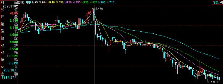兑吧2019年10月28日-2020年4月7日股价变动(白线后为2020年股价走势)