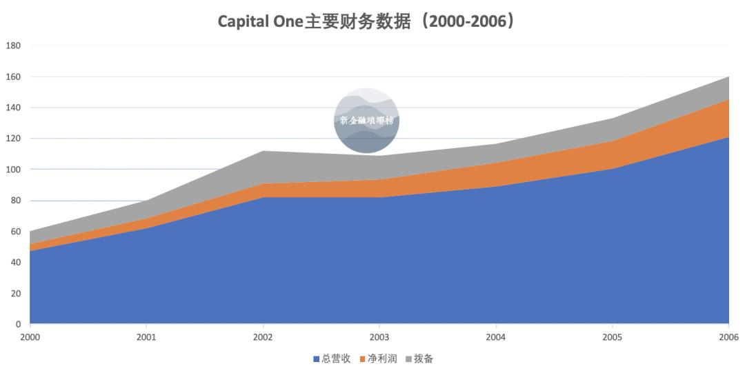在2006年之前,Capital One顺风顺水,规模与盈利快速增长,其营收从2000年的47.18亿美元增长到2006年的120.92亿美元,净利润则从4.7亿美元飙升至15.7亿美元。