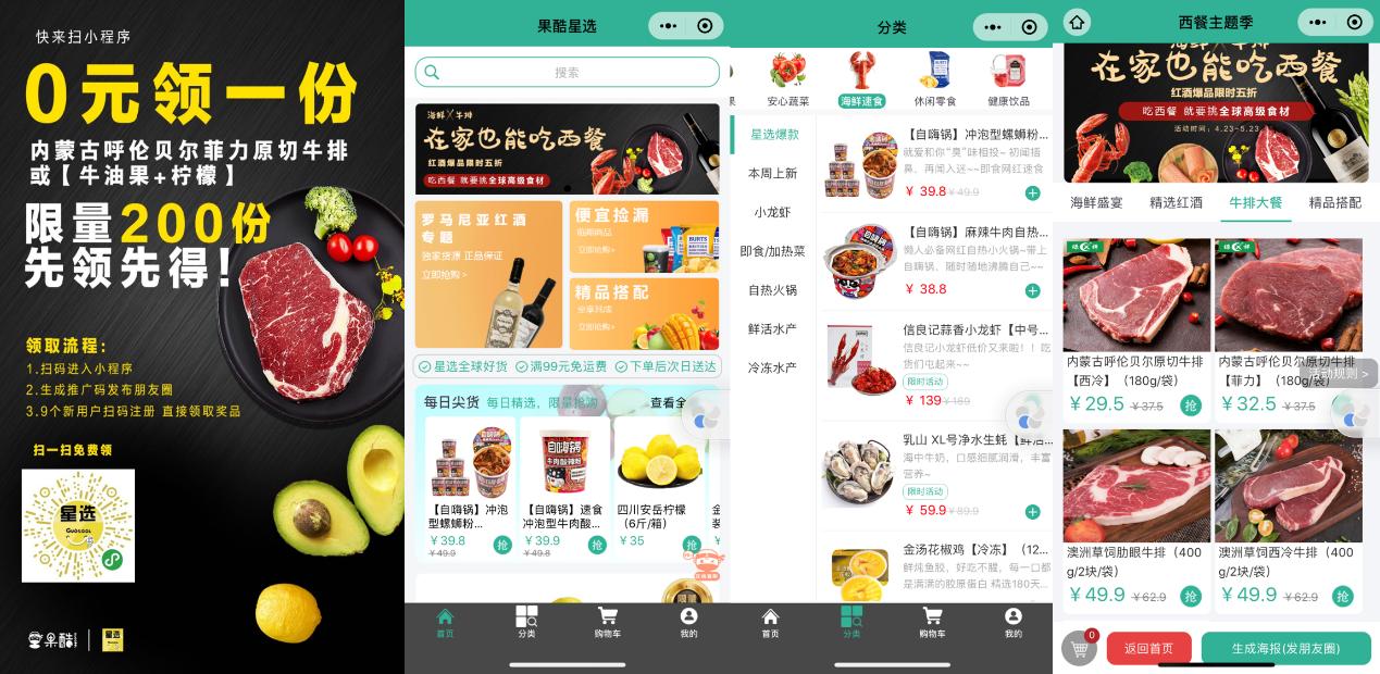 果酷星选则是给中腰部商家提供一个生鲜电商平台,供应商以平台的统一身份进行采买和分发,帮助实现精准引流,消费者则可以借此买到来自全球的高性价比生鲜产品。