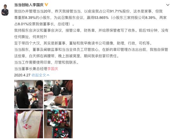 李国庆发文:前后15分钟,没有任何撕扯,何来抢?