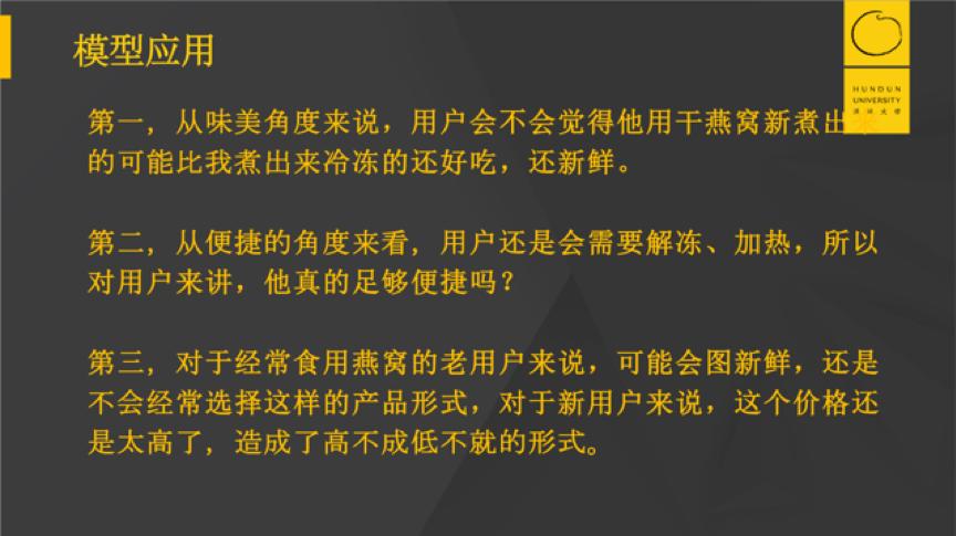 具体到我的燕窝生意上,大家做的都是大份量的产品,那我做小份量的产品,是不是可以提升消费者的购买欲望?