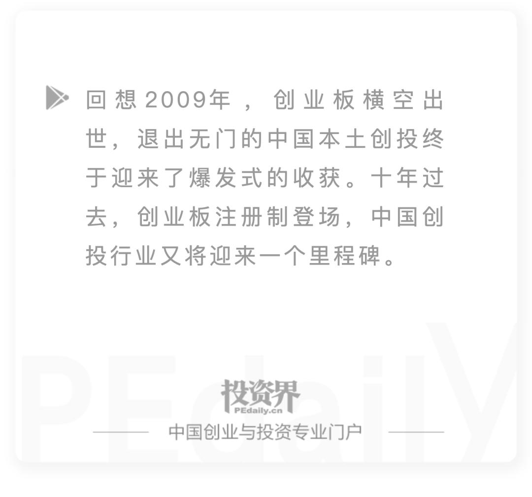这是VC/PE圈沸腾的一夜。回想2009年,创业板横空出世,退出无门的中国本土创投终于迎来了爆发式的收获。十年过去,创业板注册制登场,中国创投行业迎来一个新的里程碑。
