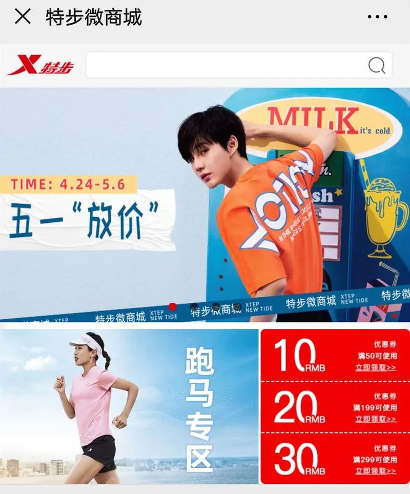 特步虽然没有公开线上营收数据,但根据公开报道,特步在全国4000多家门店相继上线“特步运动+”小程序,门店导购变成云客服,并参与直播带货。同时推出“特步微商城”,支持无门槛分销合伙。这些举措让特步店铺最高的转化率达到16%,单日线上销售额最高超过800万元。