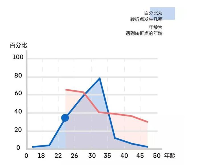 根据报告,一个人可能遇到的转折点从23岁开始,27-30岁达到小高峰,31-35岁达到大高峰。
