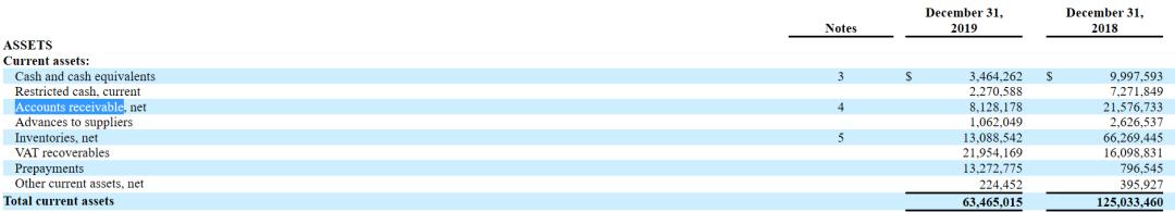 亿邦之所以会产生如此大的存货减值(18年经营利润仅为2444.6万美元,对应存货减值为6180万美元),可以推断其两个年间均有大量的存货滞留仓库。2018年及2019年,公司存货分别为6626.9万美元及1308.9万元,可得出2019年的存货周转天数为103天,去年销售情况难言理想。
