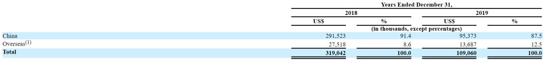 2018年及2019年,亿邦的产品(大部分就是矿机)在国内市场贡献的收入比例分别为91.4%及87.5%。