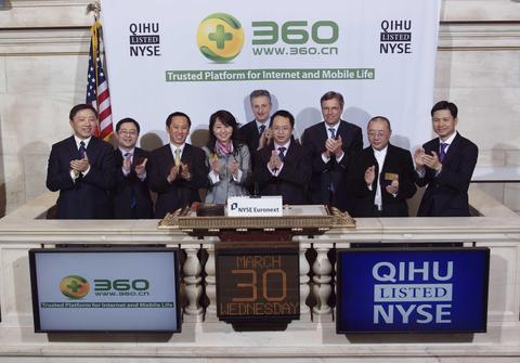 奇虎360上市当日周鸿祎敲响纽交所闭市钟