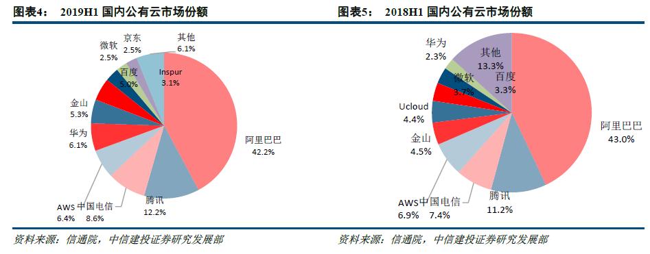 信通院数据显示,2019年上半年,金山云在中国公有云市场占据5.3%的市场份额,排名第六。