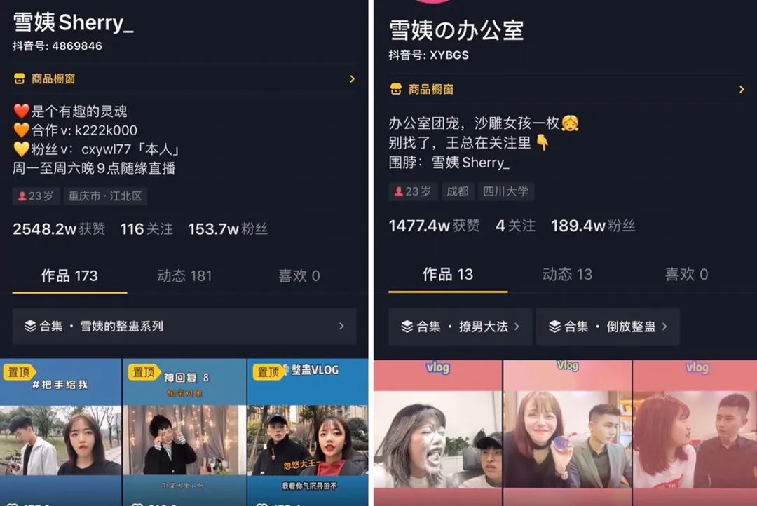 2019年6月1日,雪姨Sherry发布第一个视频,11个月做到153万粉丝。雪姨の办公室则用1个月做到180万粉丝。