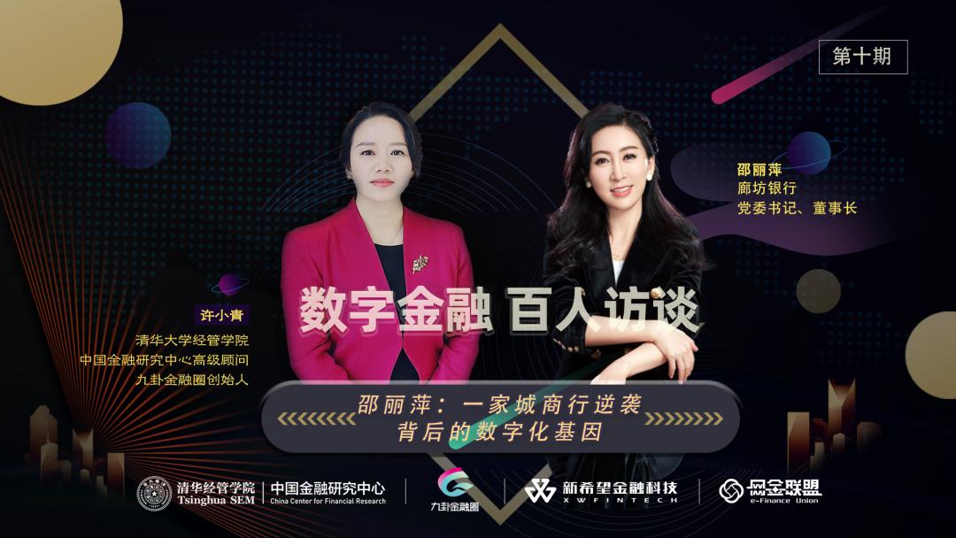 作为廊坊银行重组起航的掌舵者和见证者,廊坊银行党委书记、董事长邵丽萍近日接受了清华大学经管学院中国金融研究中心高级顾问、九卦金融圈创始人许小青的访谈,用危中寻机的辩证思维结合实践分享了廊坊银行在打造特色银行和数字化银行方面的心得和经验。