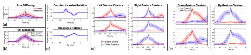 研究人员共设计了8种手势,分别是:手臂僵直、转动(分为顺时针转动和逆时针转动)、握拳(分为左手、右手、向上、向下)、手腕弯曲和伸展。
