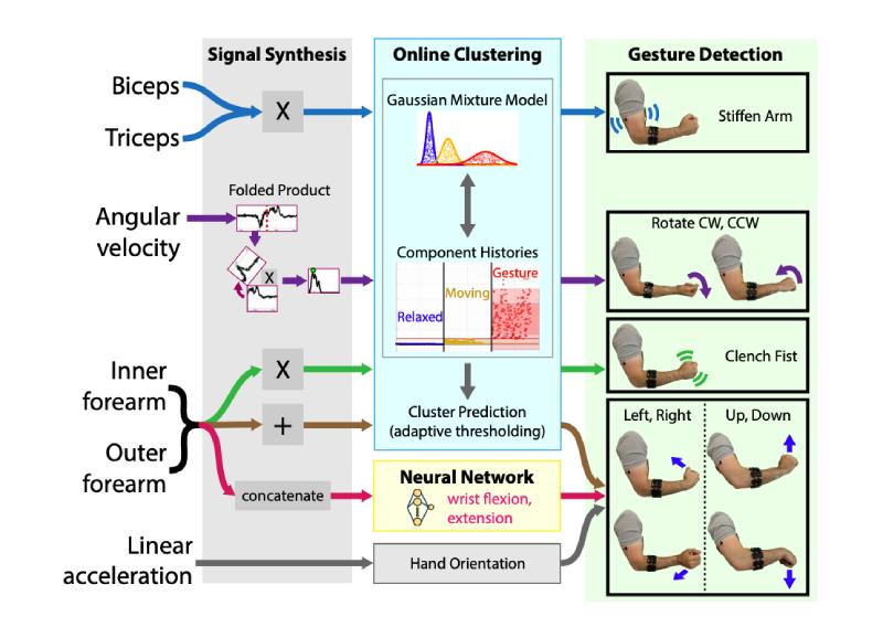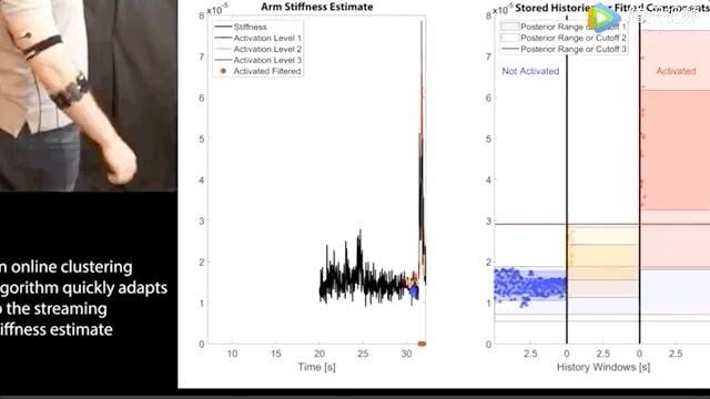 对于大多数手势引起的肌电信号,研究人员使用自适应在线聚类算法(Online clustering for adaptive thresholding)帮助机器人理解。