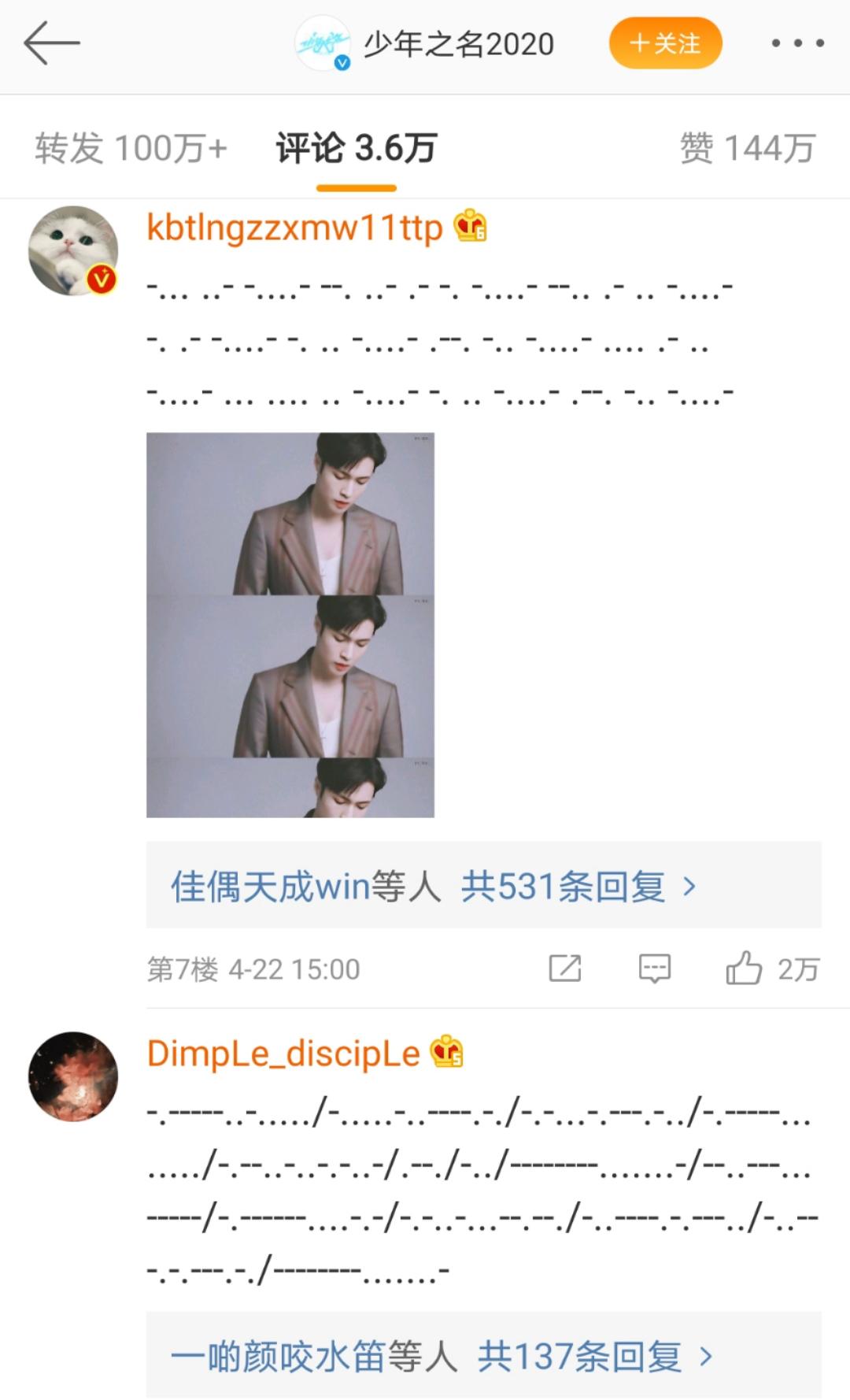 《少年之名》的摩斯密码释放导师信号,官微拟人化(李铁勺),贴合节目造网络新词(灼言灼语),大玩emoji表情包导师梗等,这背后是对年轻人追求个性化的情感需求,不论是密码、造词还是导师梗,都是通过圈层暗号打造圈内认同感。而从官微下面一排排摩斯密码评论来看,裤此举,也算是成功打入年轻人内部。