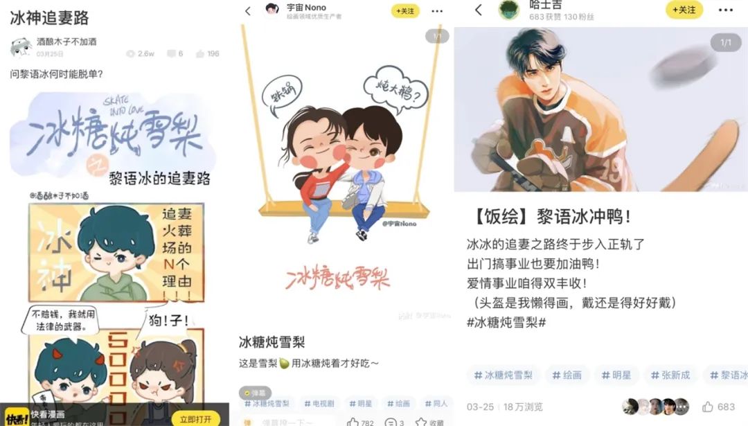 摔倒吻,烟花吻,只要冰糖CP发的糖够甜,看剧的人就只多不少;甜度不够,网友来凑。这边千人在线追剧,裤还在B站、Lofter、快看漫画这些年轻人聚集的地方发起二度创甜活动,最出圈的应该是那个沙雕海外剧名,登上微博热搜top1。