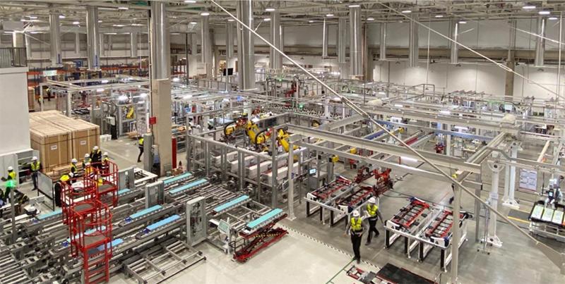 特斯拉在财报中表示,上海工厂的建设正在按计划进行,目前已经引入了Model Y的生产线,从特斯拉提供的照片中可以看到,上海工厂的Model Y生产车间已经完成了框架搭建,电池模组组装车间已经完工。