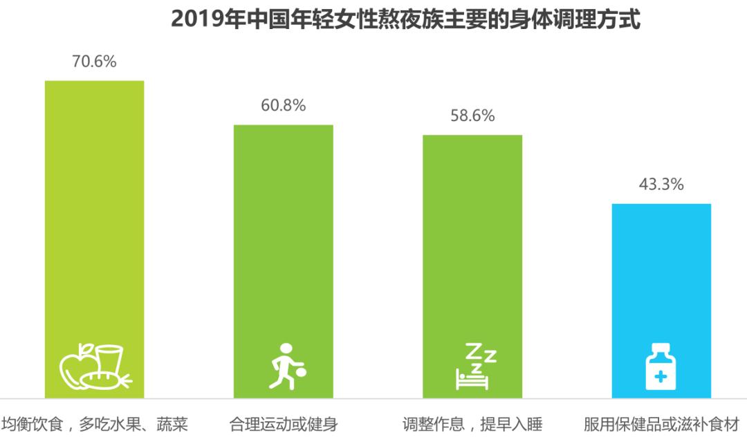 但是,超过一半的人选择将均衡饮食和服用保健品的食疗保养作为晚睡熬夜族首选的调理方式,而这为“妆食同源”带来商机。