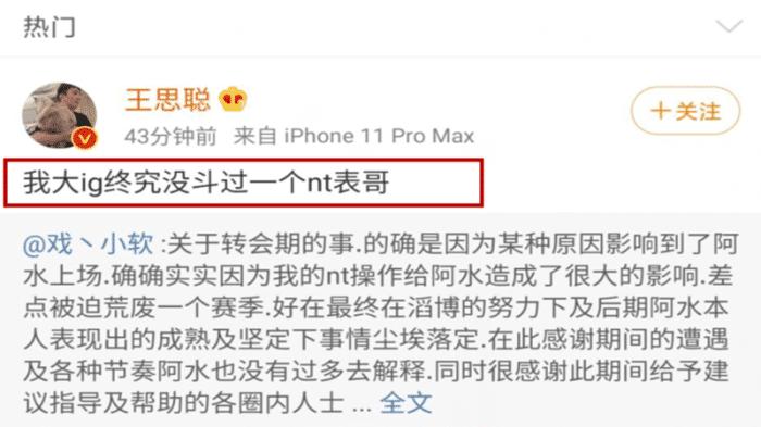 根据表哥的微博内容,JKL之所以被耽误小半个赛季,均因为他在转会期操作不当。IG老板王思聪「亲自开团」,一时间真真假假的爆料全都涌了出来。表哥第二天再度发声,解释JKL在他的操作下,与某家俱乐部签订意向合同,因正式合同条款不合理随即选择不签约,但是意向合同成为后续签约的阻碍,最终在JKL自行承担损失解决问题后,与TES签约。