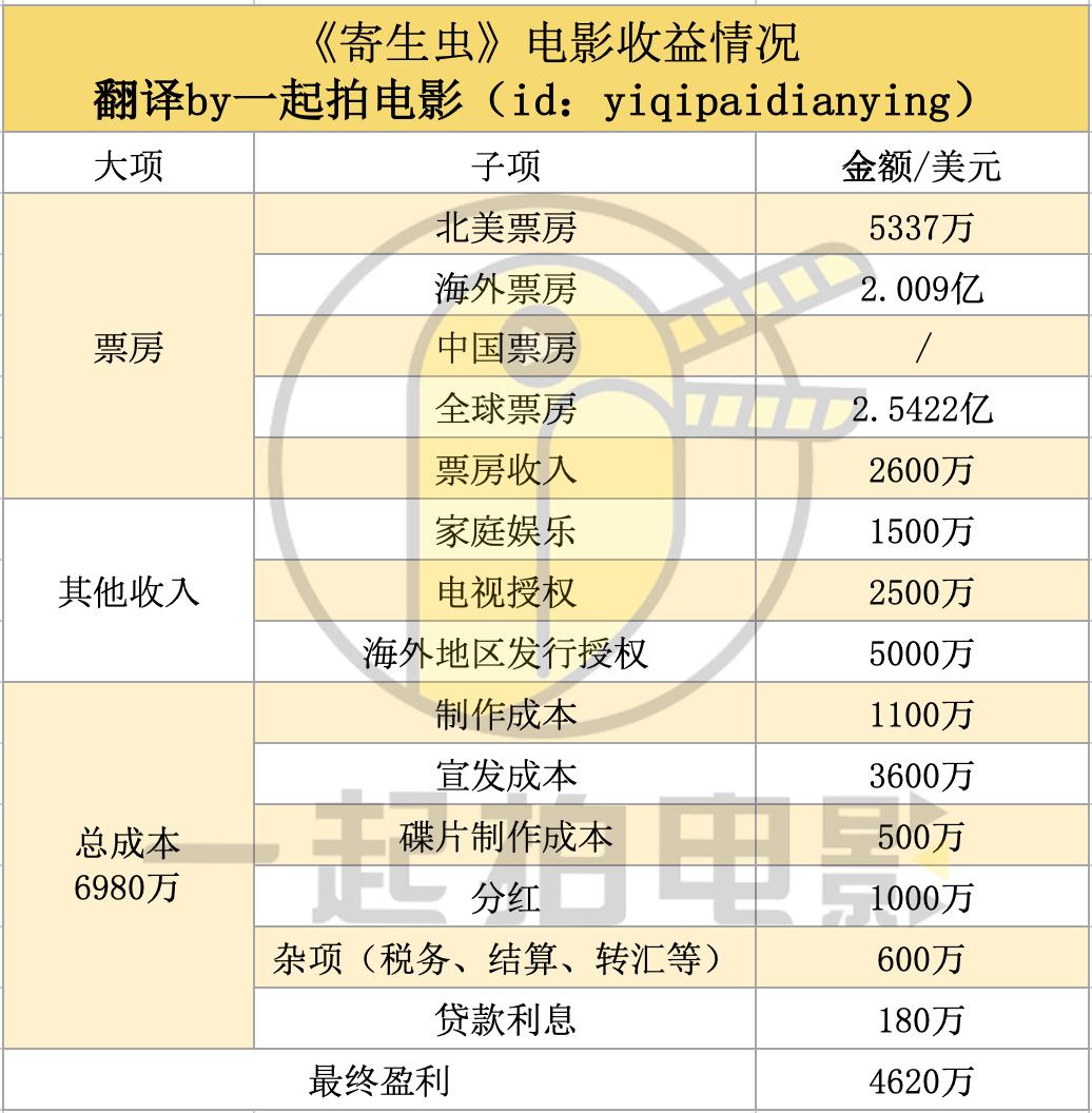 除此之外,Deadline其实对韩国本土电影产业的工会福利、融资成本、利息以及经常性费用并不会像好莱坞电影工业那样,有着清晰的认识,因此在【杂项】与【贷款利息】的真实数据,或许也会有一定的出入。可以说,《寄生虫》这个热度,Deadline蹭的不是特别专业。