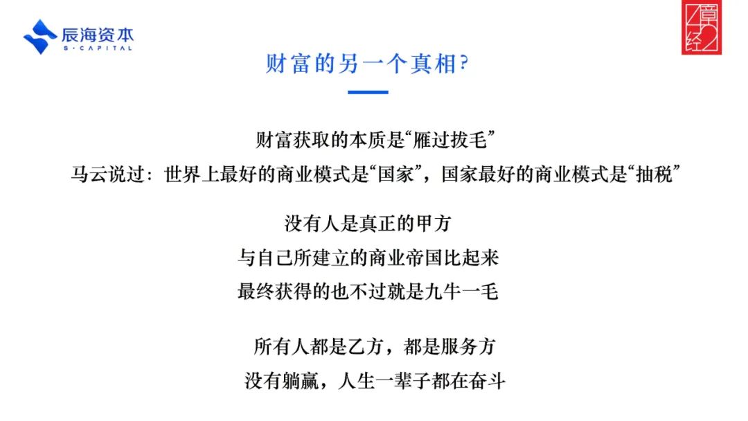 财富就是少数人控制多数的存在,财富是需要通道源源不断的输送和经年累月的积累。每个人都要认清自己的位置以及最重要的是:现实残酷,没有人是甲方,也没有人能躺赢。