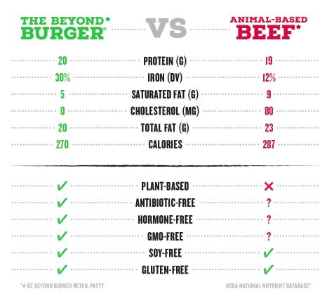 Beyond meat植物肉汉堡营养成分对比传统牛肉汉堡