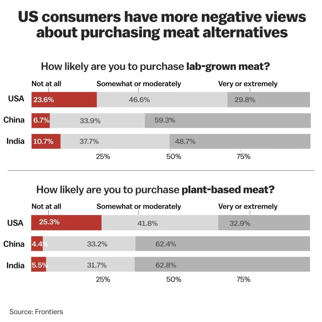 美国、印度、中国消费者对植物肉和人造肉的不同态度