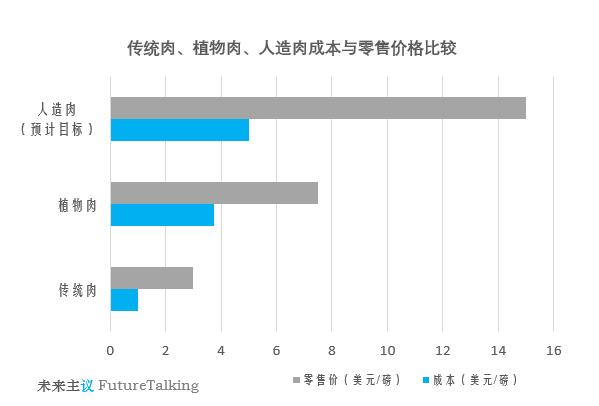 将成本降至消费市场可接受的范围,植物肉比人造肉发展得更快,使得其先于人造肉进入消费市场。但其价格就目前而言,仍旧高于传统肉。在零售超市,一盒用于制作汉堡的beyond meat肉饼的价格在美国Costco可低至约为7.5美元每磅。而其他传统肉类产品价格可能仅需花费消费者3美元每磅。