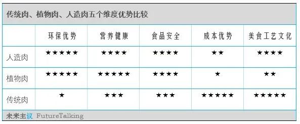 比较了三者在环境优势、营养价值、食品安全、成本优势、美食工艺文化五个维度上的情况,很难说谁是绝对的王者。除了环保优势上的格局已毋庸置疑外,其他几个维度不同程度尚有继续发展演变的空间。