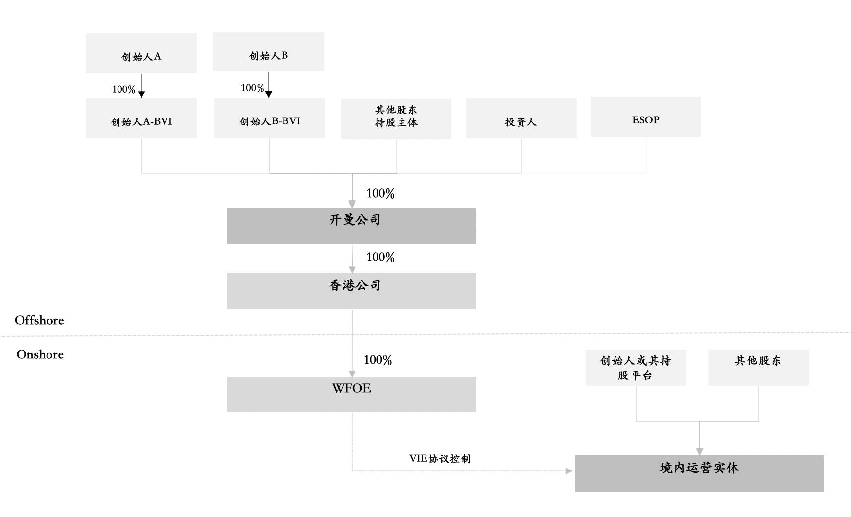 * 关于VIE架构的细节探讨并非本文的重点,上述典型的VIE架构示意图作为本文探讨员工期权激励相关内容的背景性参考。