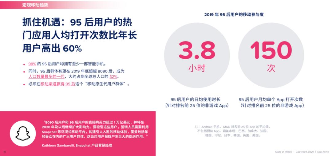 2、95 后用户月均单个 App 打开次数150次,比年长用户高出60%