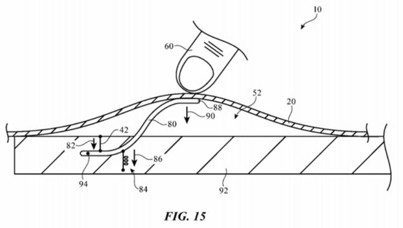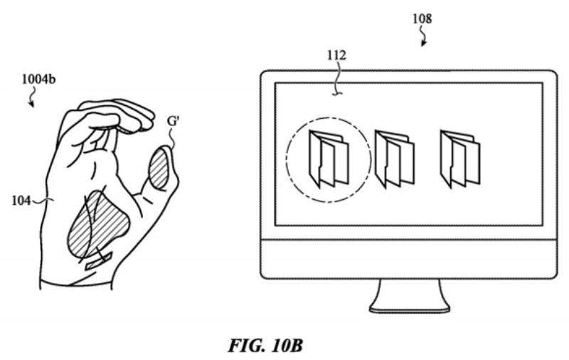 在2019年的另一份文件中,苹果通过轻轻挤压手指两侧来提升用户在显示屏上打字时的物理反馈。同年2月,苹果还曾提出在衣物中布署导电线的相关方案。